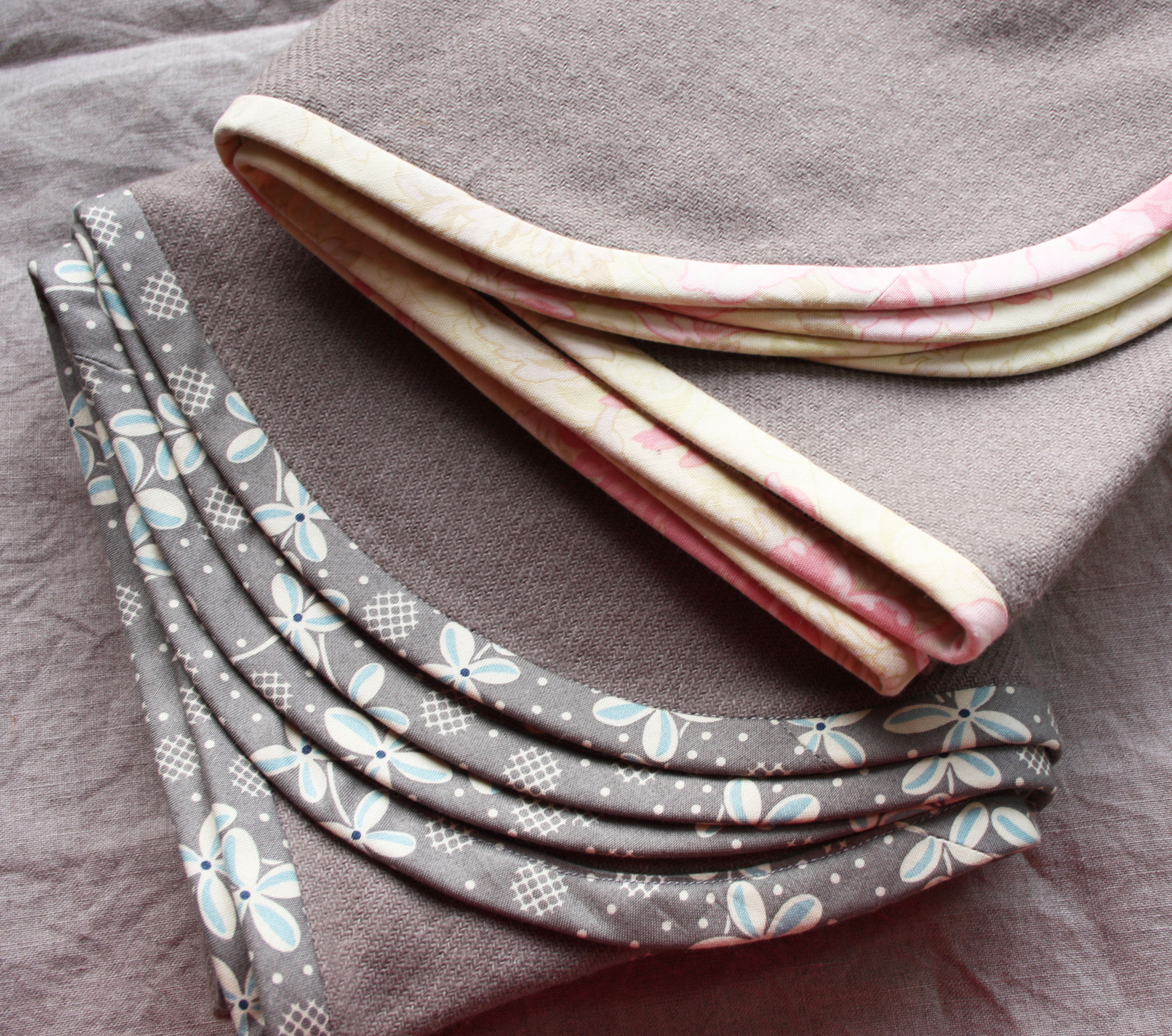 Anyway, I bought 4 pieces of gorgeous fabric including this grey twill blanketing which I have cut in half to make two bassinet sized blankets. How to finish the edges off had me stumped for a while, and I eventually decided that bias binding was the way to go. The fabric for the binding cost more than the blanket fabric LOL.