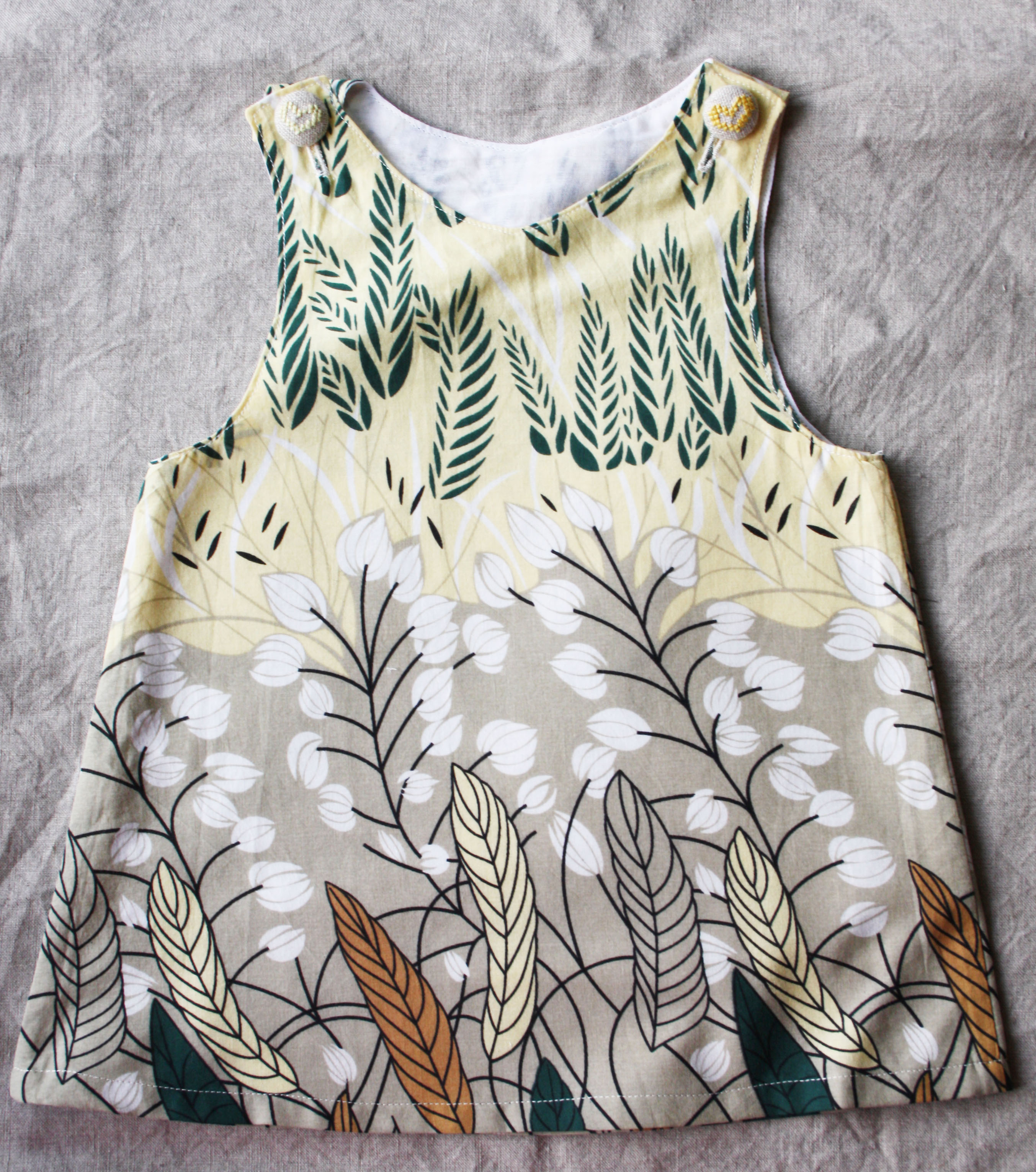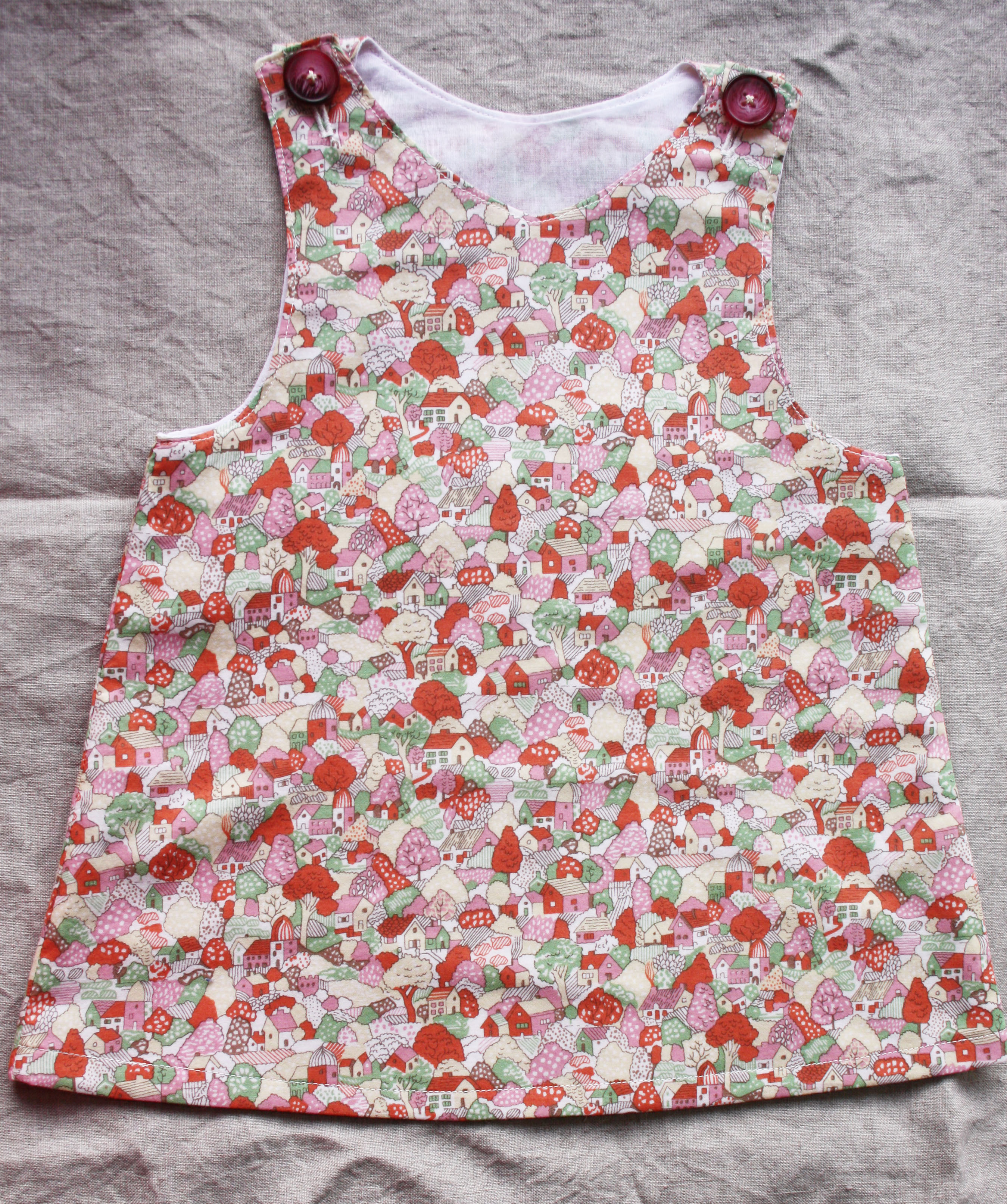 To conjure this pattern I used the bodice shape from one of my Japanese sewing books and graded down the size so I think it’s about right for a 6month old. I extended the bodice to create a simple a-line shape.